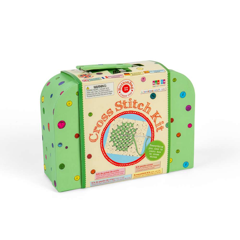 This suitcase kit contains everything you need to learn how to cross stitch. Simple patterns and full colour instructions mean this is suitable for all levels. Designs are printed directly onto the fabric making it easy for beginners to follow and felt, scissors and instructions are included to show you how to make frames for your cross stitch designs to turn them into key rings or a pencil case. There are nine projects in total including a big piece of blank fabric for your own designs. With high quality contents and carefully written patterns and instructions aimed at the beginner, this is simply the best ever cross stitch kit for children.